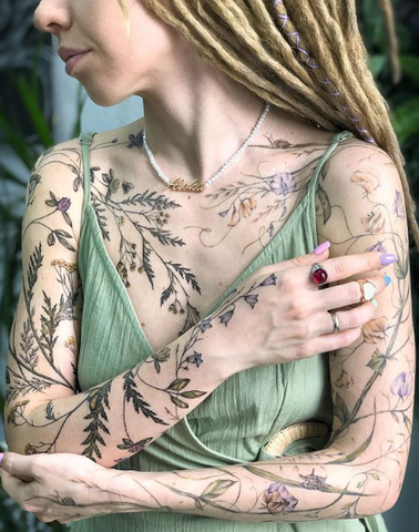 Xl Flower Sleeve Temporary Tattoo Etsy
