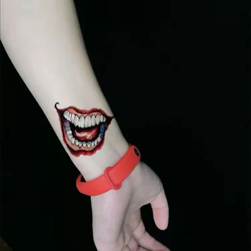 Clown Smiley Tattoo Sticker Devil Smile Waterproof Temporary Men Women Grimace Big Mouth Art Fake Tattoo On The Back Of The Hand Temporary Tattoos Aliexpress