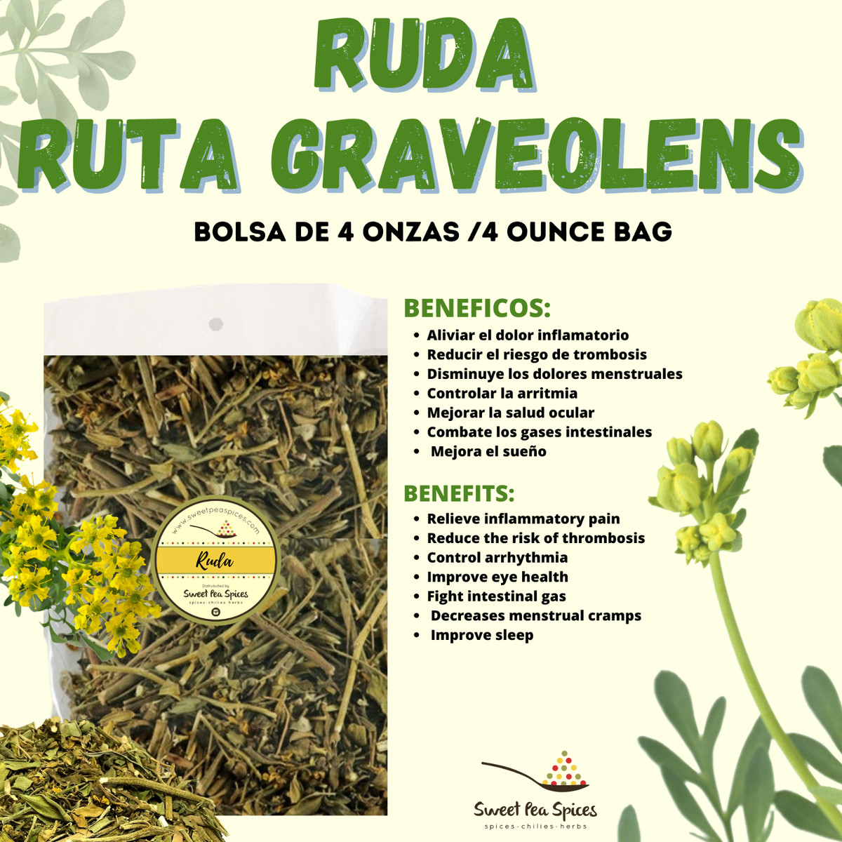 Ruda Rue Herb Tea 4 Oz Planta Espiritual Amuleto Suerte Oracion Ruta Graveolens Ebay